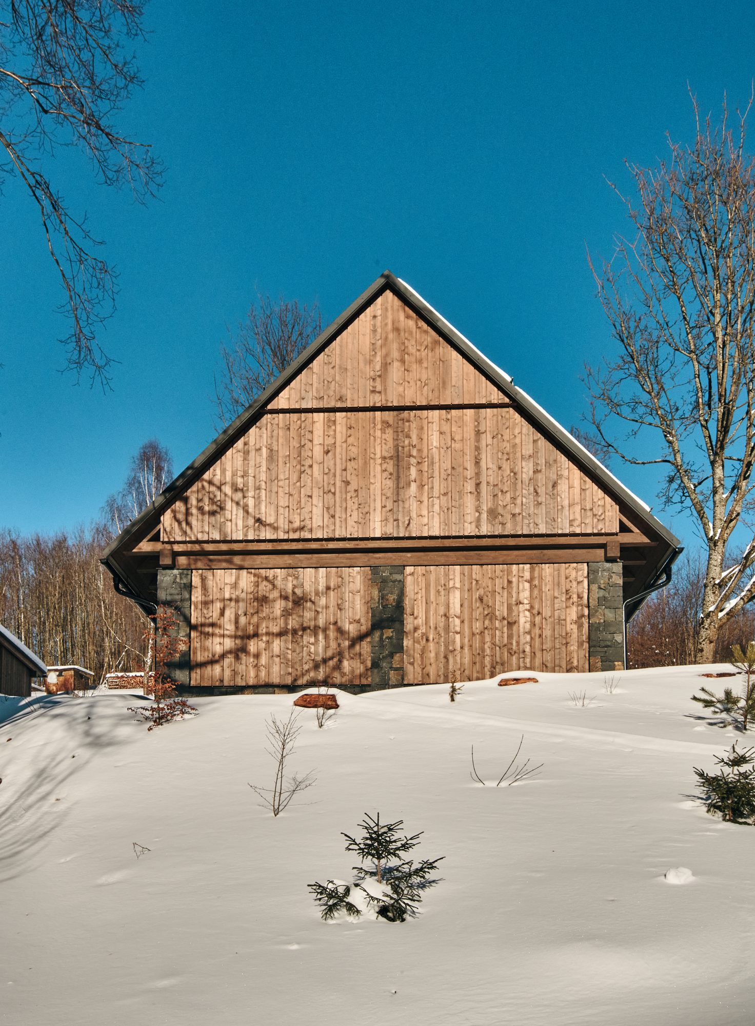 NOVÁ STODOLA V HORNÍ TŘÍČIrealizace moderní stodoly s vlastním wellness s jezírkem. Architekt: Ateliér TFH